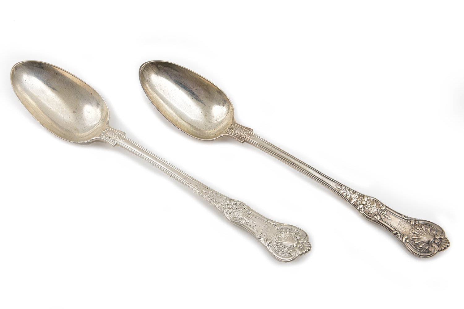 TWO VICTORIAN SILVER QUEENS PATTERN BASTING SPOONS
