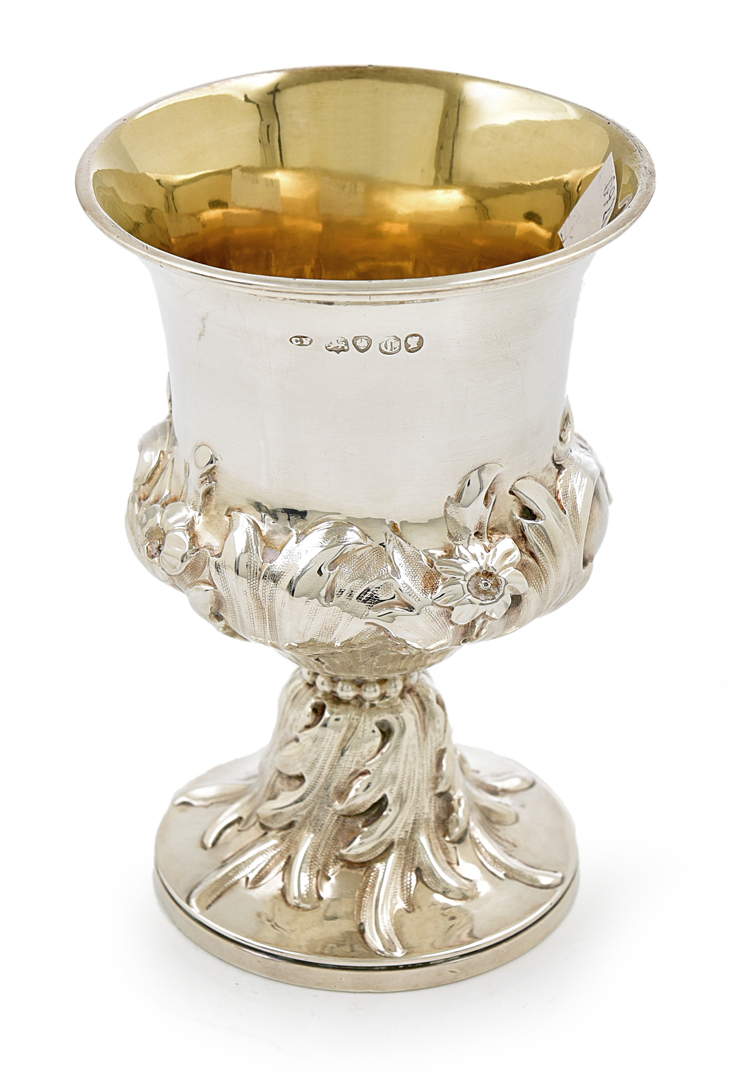 A GEORGE IV SILVER HORSERACING TROPHY OF VICTORIAN INTEREST: THE 1853 FIRST HUNT STEEPLECHASE TROPHY CUP AND COVER