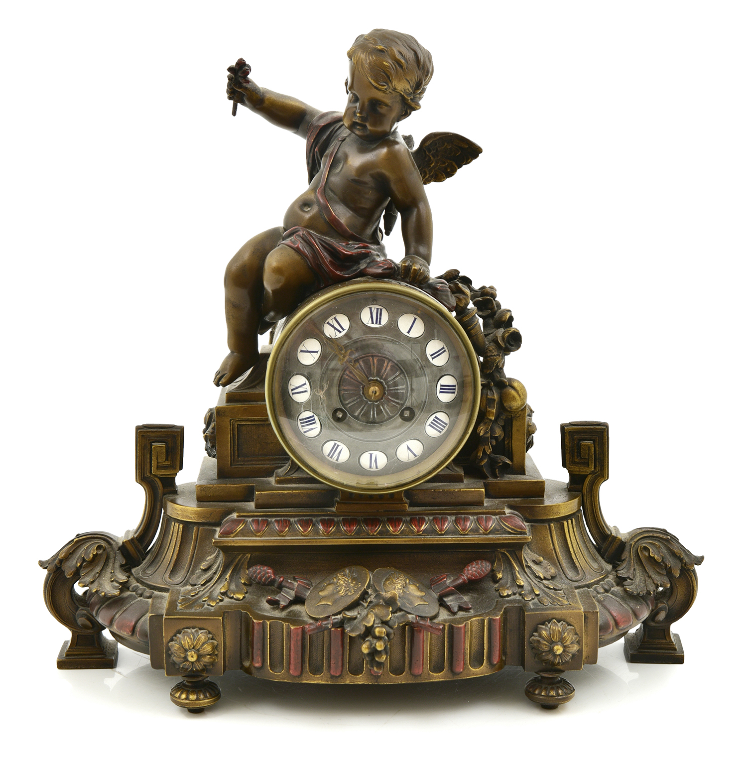 A FRENCH PATINATED BRONZE MANTEL CLOCK