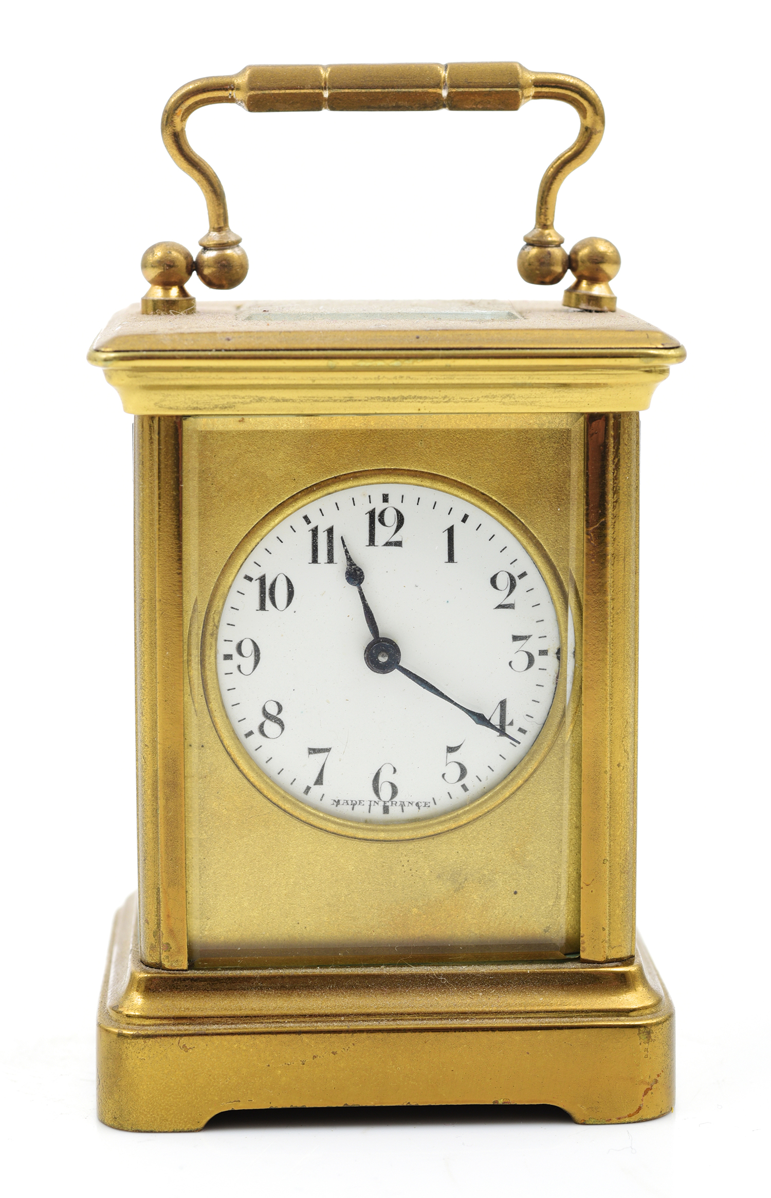 A FRENCH MINIATURE BRASS CASED CARRIAGE CLOCK