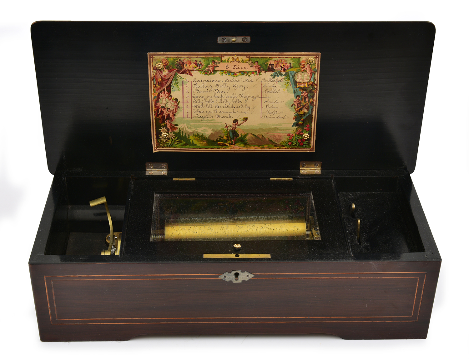 A SWISS ROSEWOOD AND MARQUETRY CASED MUSIC BOX