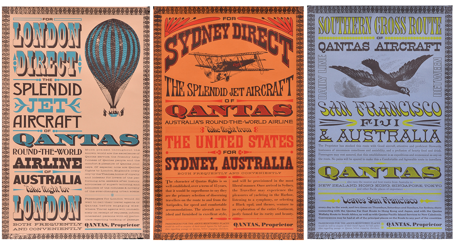 THREE ORIGINAL 1960'S QANTAS ADVERTISMENT POSTERS