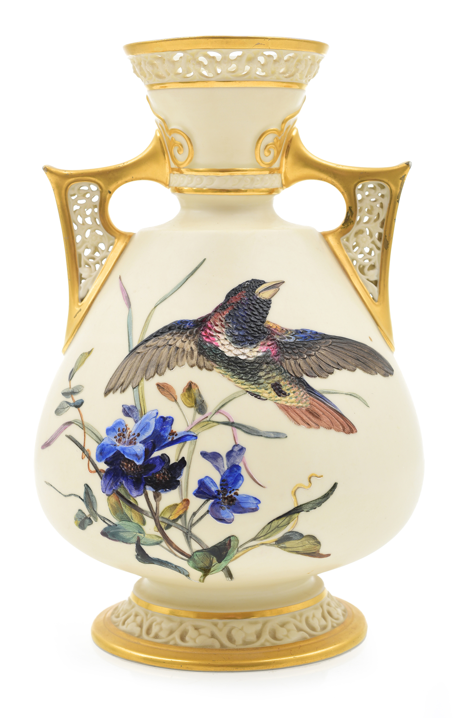 A VICTORIAN ROYAL WORCESTER TWO HANDLED VASE