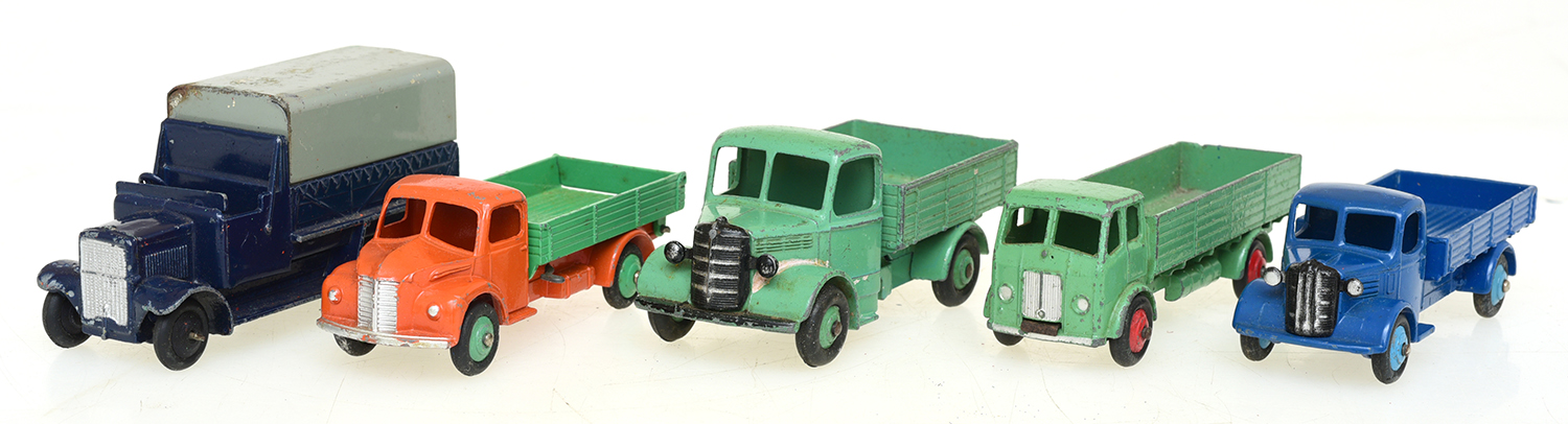 5 X DINKY MODELS INCLUDING NO. 414 DODGE; NO. 420 FORWARD CONTROL LORRY; 25W BEDFORD TRUCK AND TWO OTHERS (G - VG) (5)