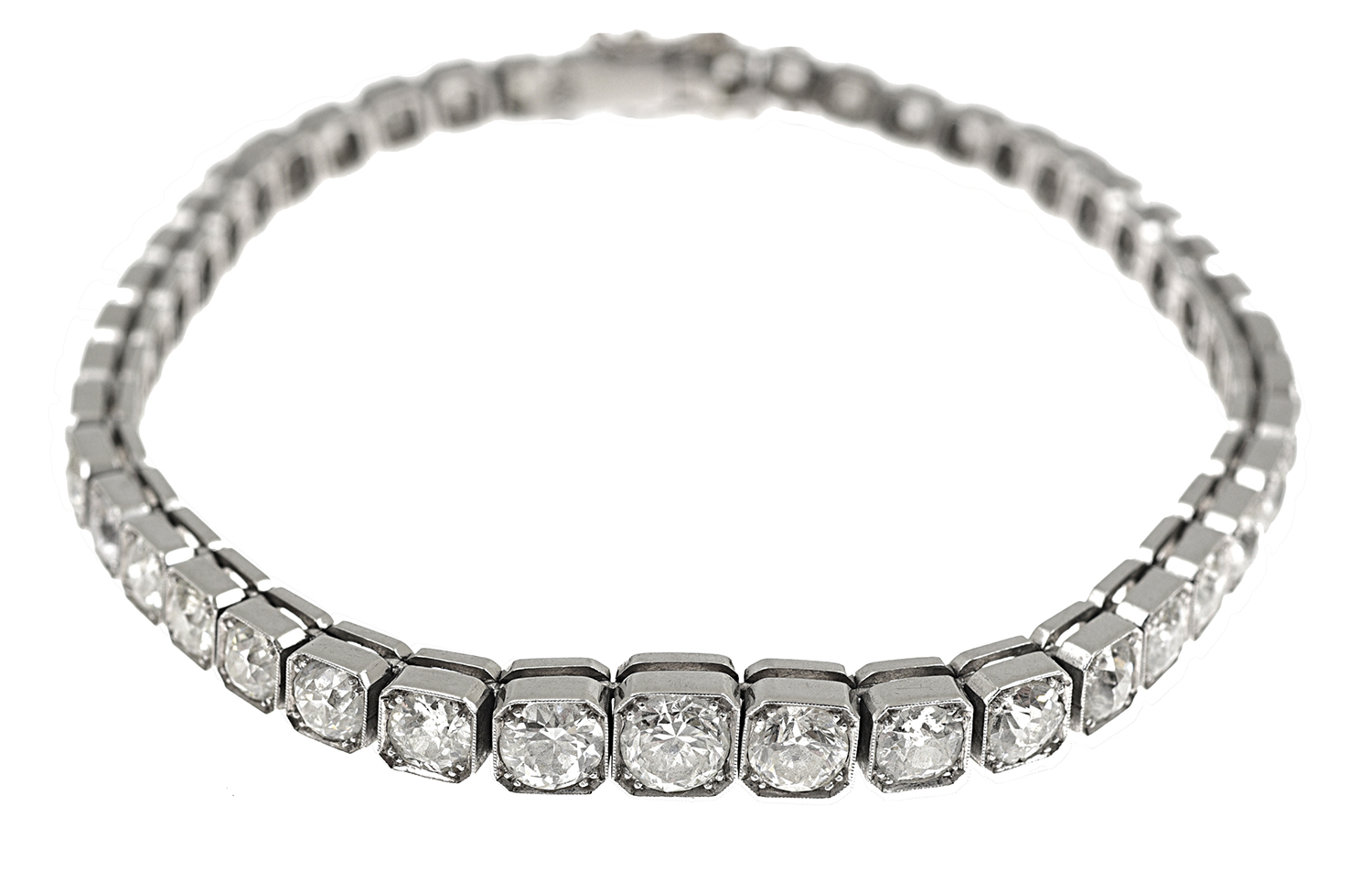 Featuring forty five graduated old European cut diamonds totalling 7.30cts, individually mounted in platinum box settings, total length 180mm.