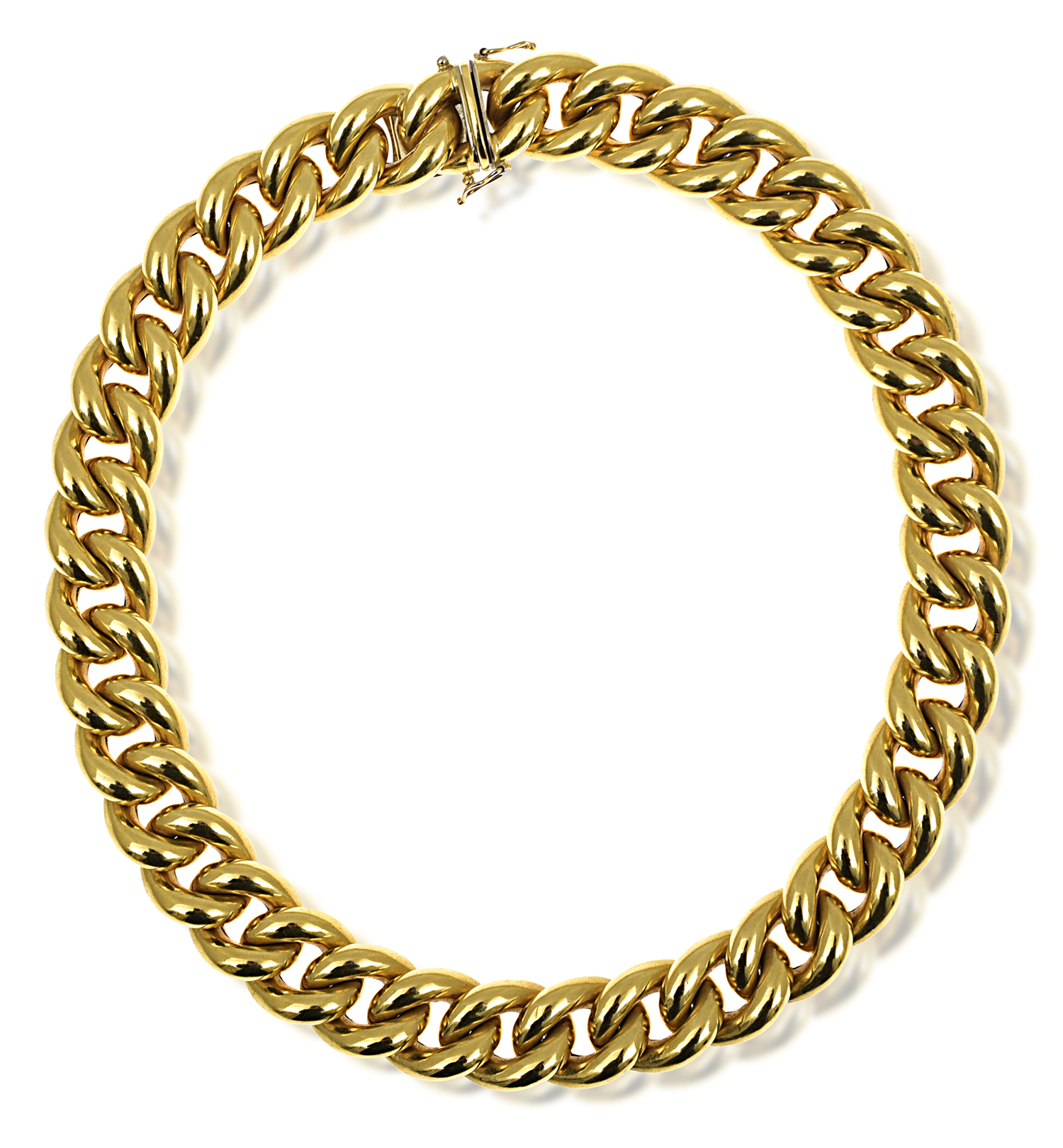The oversized curb link chain mounted in 18ct gold, total 370mm.