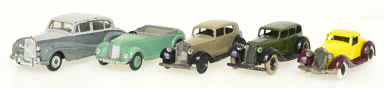 Condition ranges from good to excellent. There is paint loss and general wear to three of the cars, typical of the age. The remaining cars are very good and excellent in condition with minimal losses.