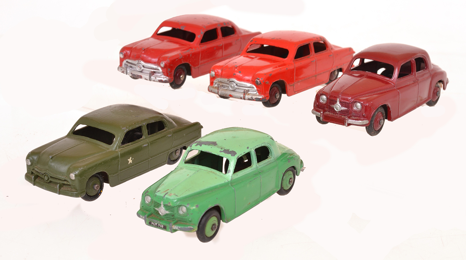 5 X DINKY MODELS INCLUDING 3 X FORD SEDAN'S IN DARK GREEN, RED AND DARK RED; AND 2 X ROVER 75'S IN MAROON AND GREEN/LIGHT GREEN (G - VG) (5)
