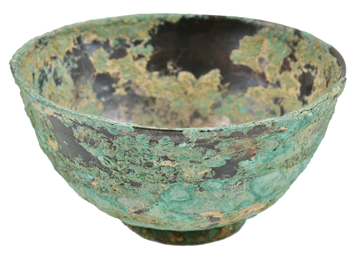 verdi-gris patina to interior and exterior, housed in fitted box, 14.5 cm diameter