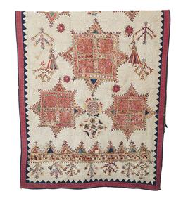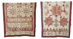 Each with hand stitched embroidery and mirror work, 210 x 104cm and 208 x 115cm (2)