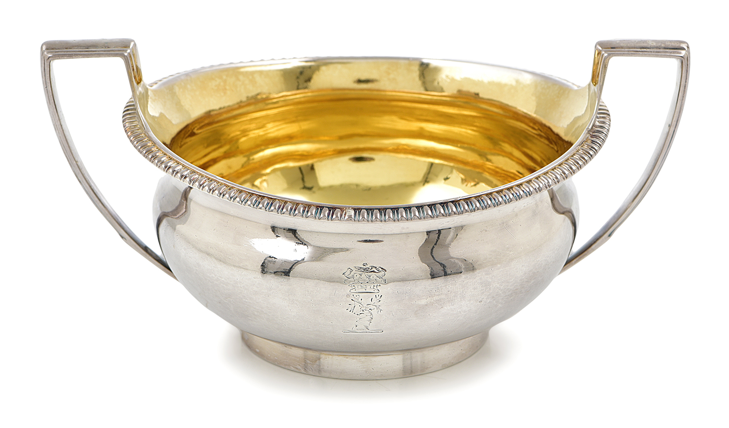 Central engraved armorial crest to the exterior; general wear and light surface scratches to the exterior