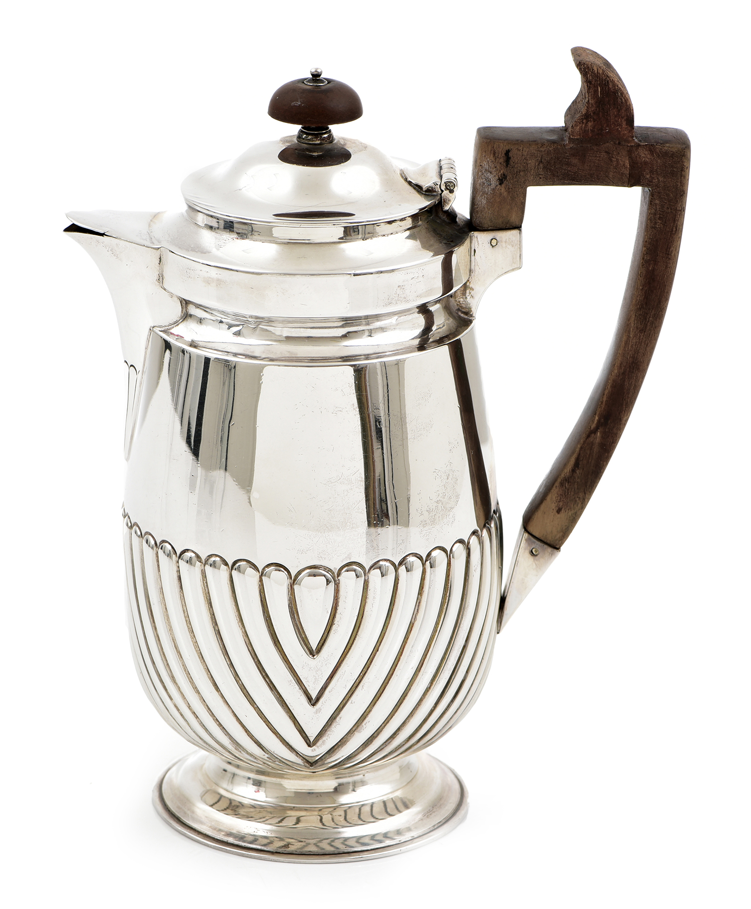 tapering cylindrical, with a fluted lower body, wooden handle and knop, approximately 418gms total weight, 19.5cm high