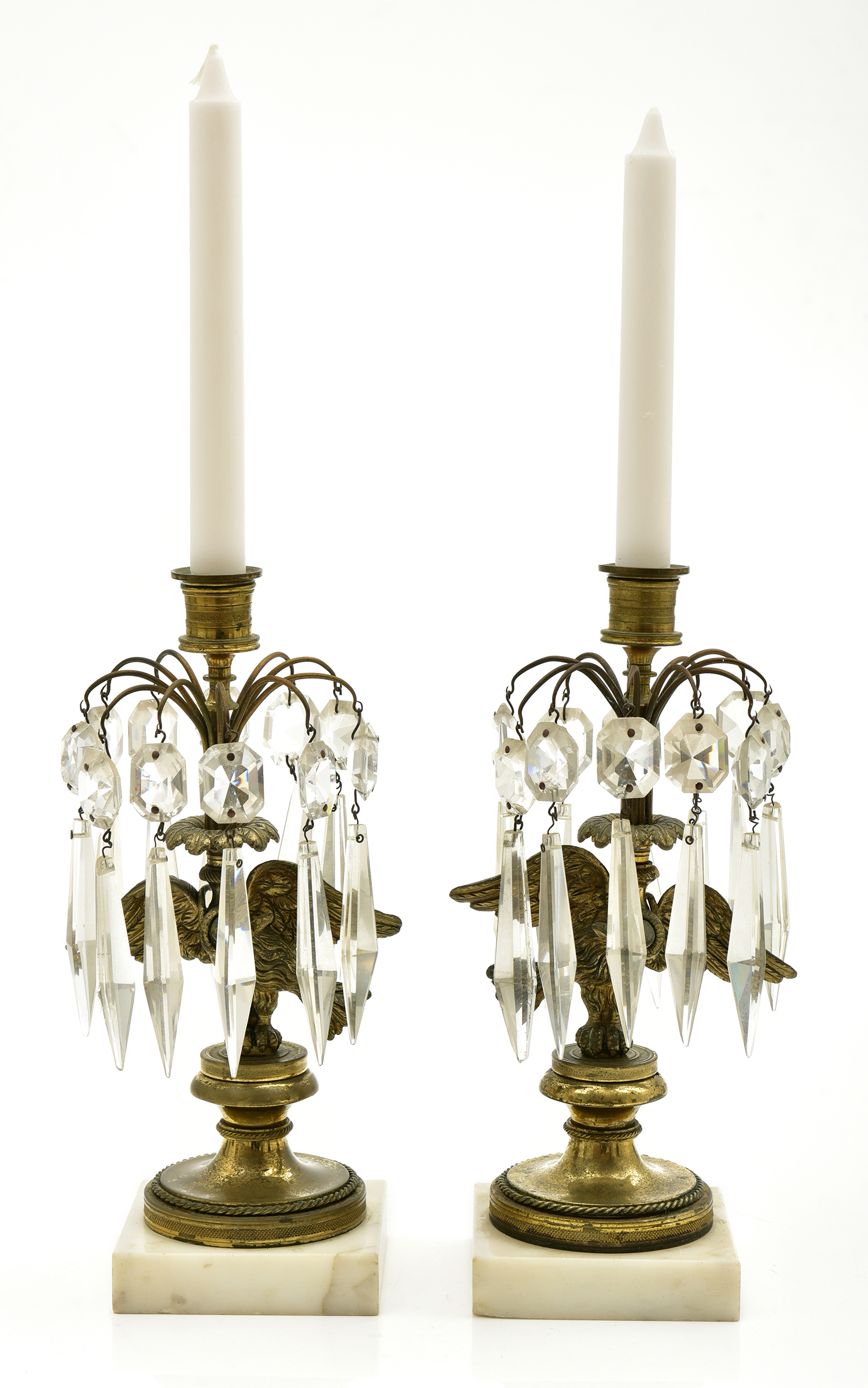 A PAIR OF CONTINENTAL LUSTRE CANDLESTICKS
