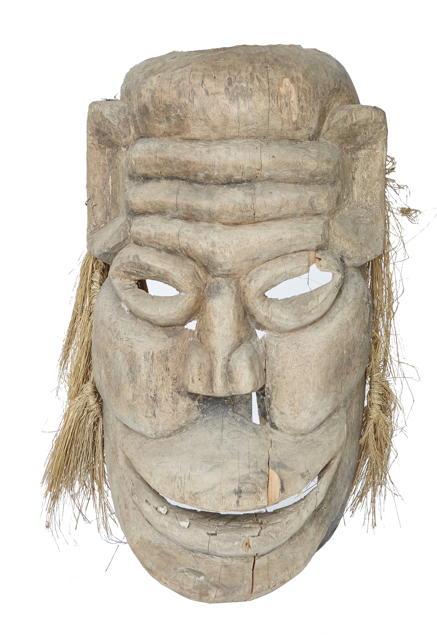 A NORTH AFRICAN WOOD CARVED TRIBAL MASK, FIRST HALF OF THE 20TH CENTURY