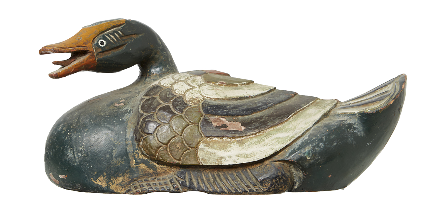 A LARGE 19TH CENTURY SOUTH INDIAN POLICHROME PAINTED DUCK