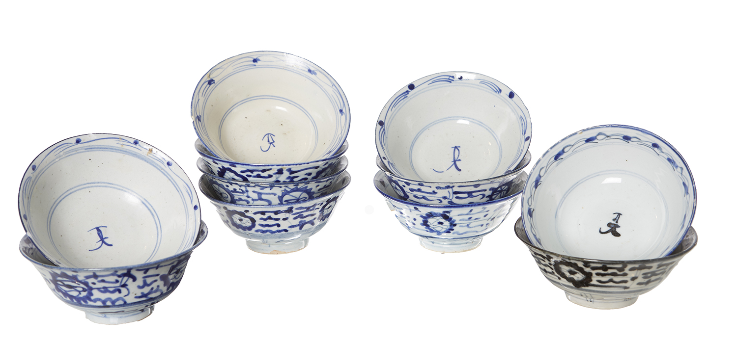 A GROUP OF ELEVEN ASIAN DOMESTIC WARE BOWLS