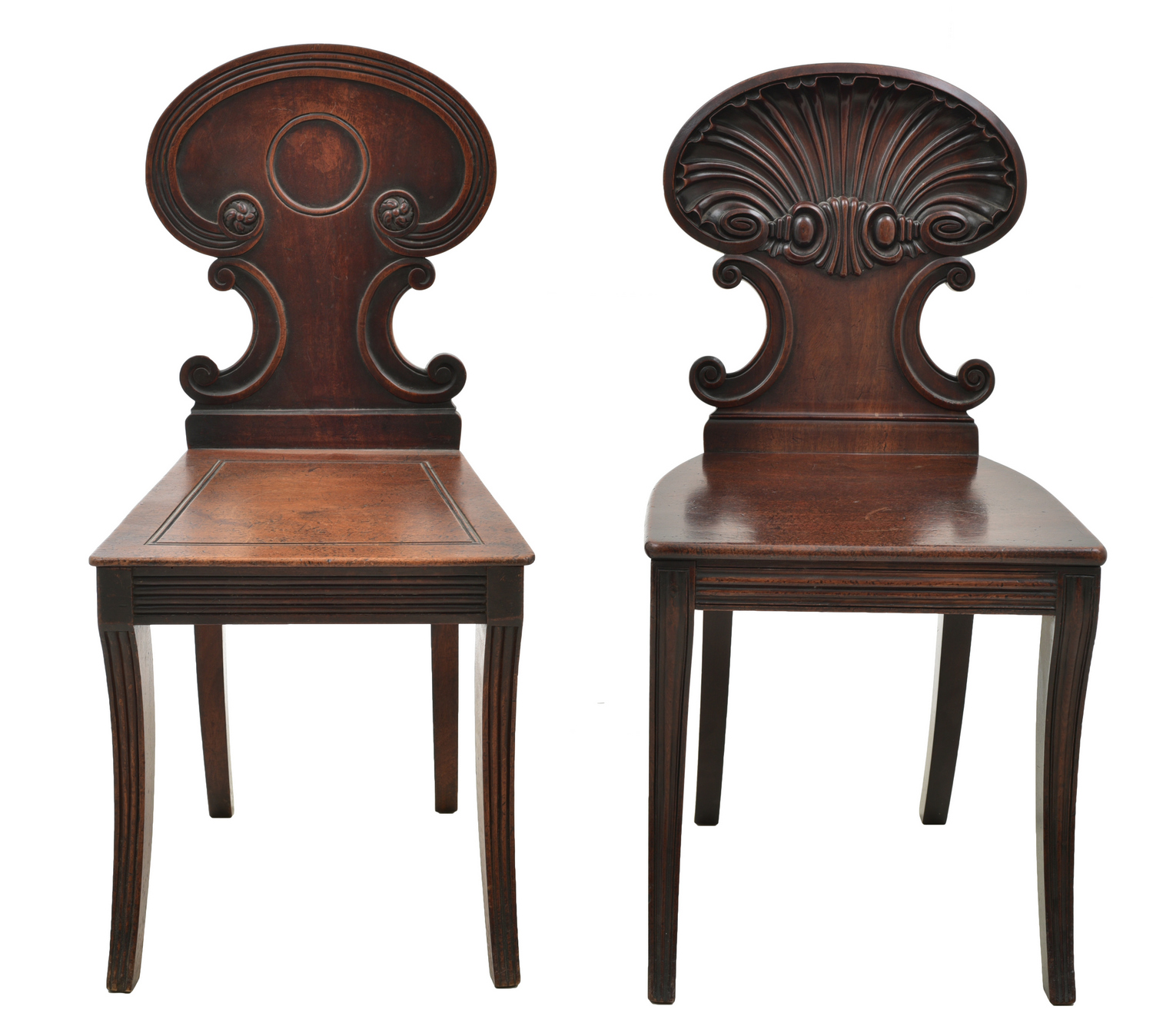 TWO SIMILAR VICTORIAN MAHOGANY FRAMED HALL CHAIRS