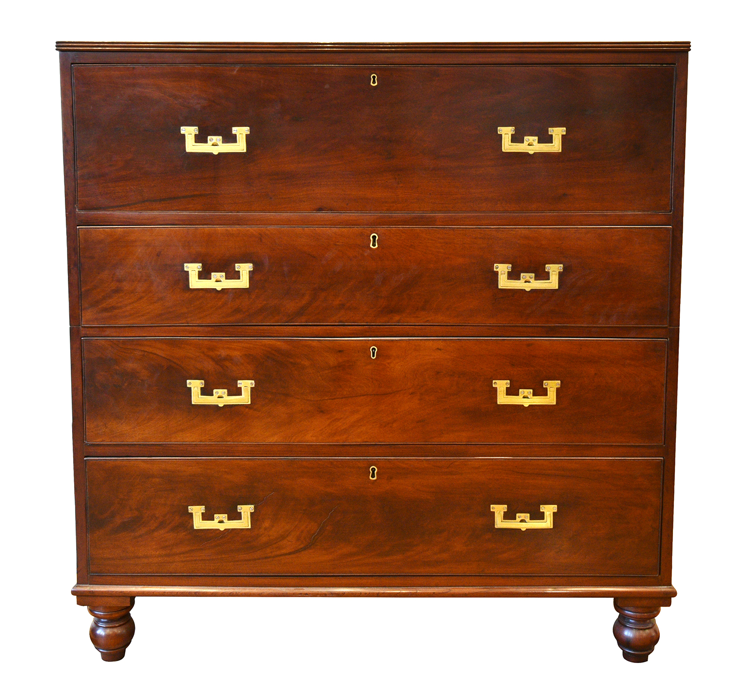 A VICTORIAN MAHOGANY SECRETAIRE 'CAMPAIGN' CHEST OF DRAWERS