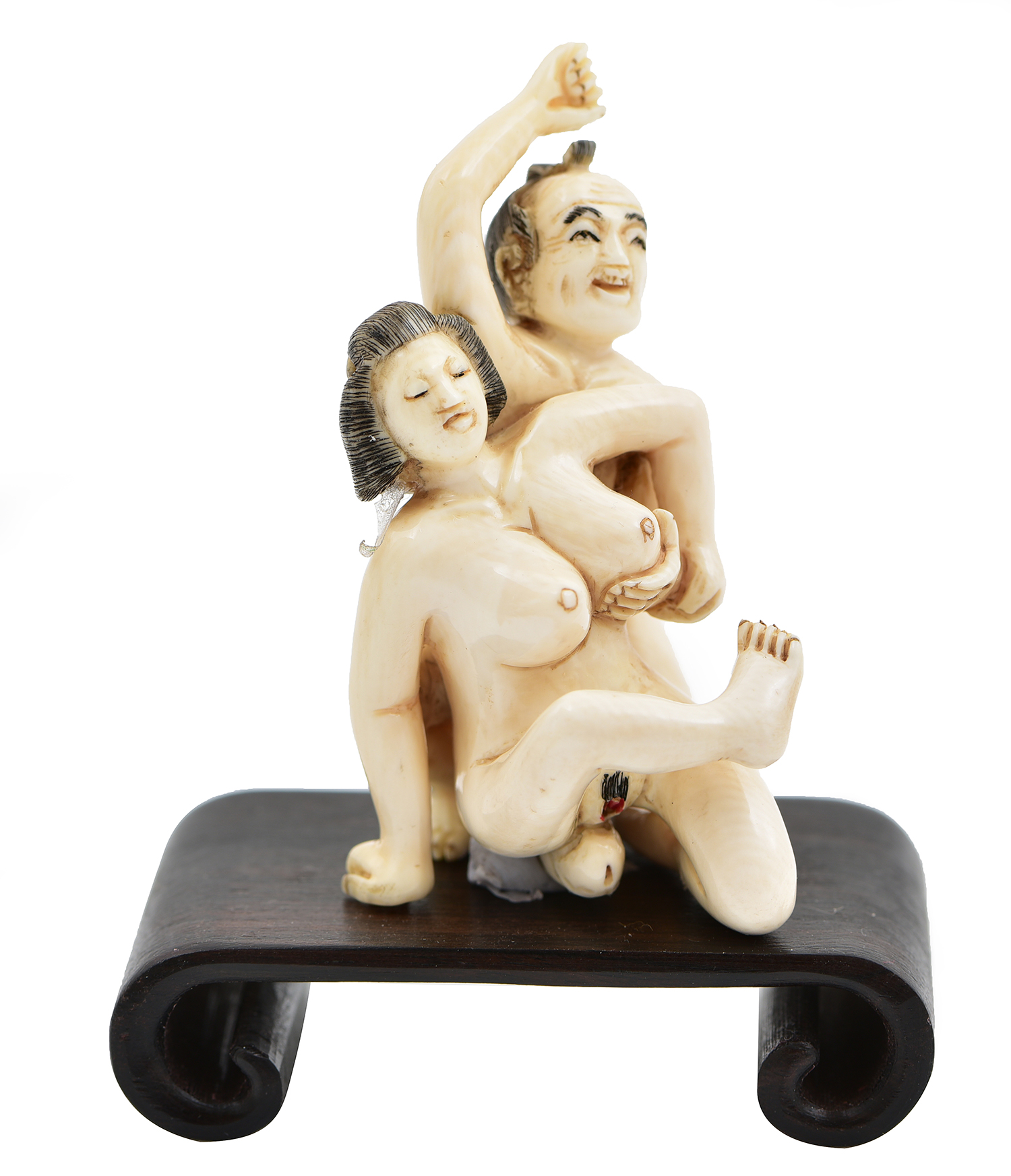 signed to base, housed on stand, the netsuke 5.5 x 3cm, the stand 1 x 5cm