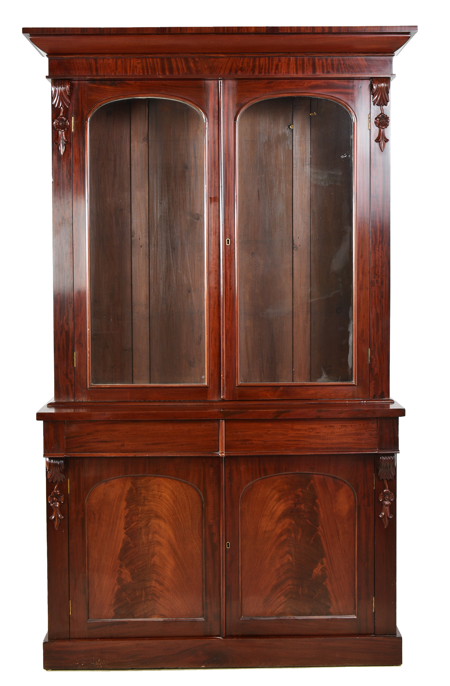 with two glazed doors, above two panelled lower doors,131.5 x 217 x 46cm