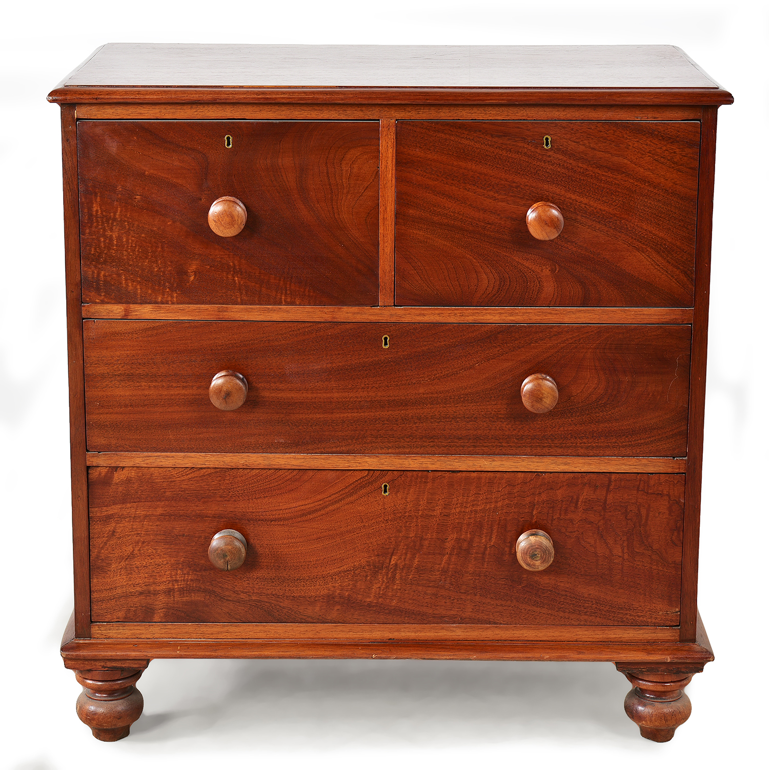 rectangular, with two small drawers above two larger drawers, on four bun feet, 90 x 90 x 50cm