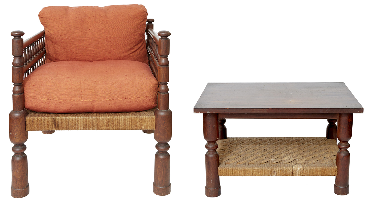 AN ANGLO INDIAN LOW CHAIR WITH MATCHING TABLE, EARLY 20TH CENTURY