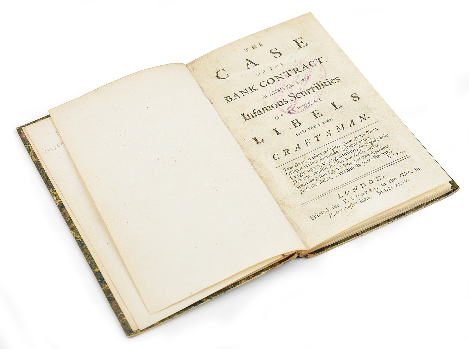 In answer to the infamous scurrilities of several libels lately printed in the Craftsman, London, T. Cooper; 1735, octavo, marbled boards (some foxing)