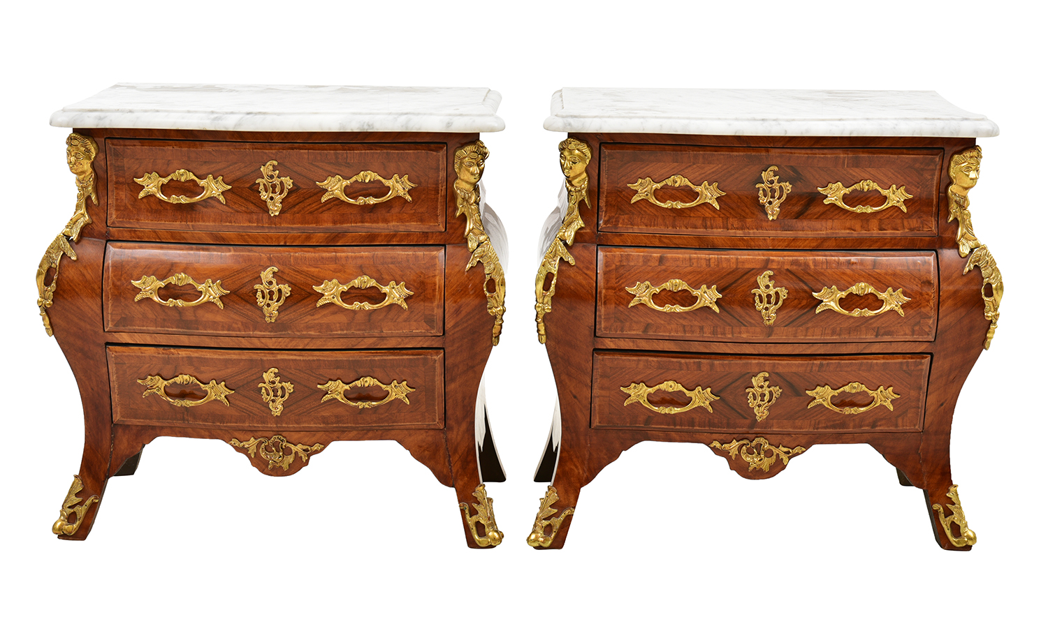 A PAIR OF SMALL LOUIS XV STYLE COMMODES