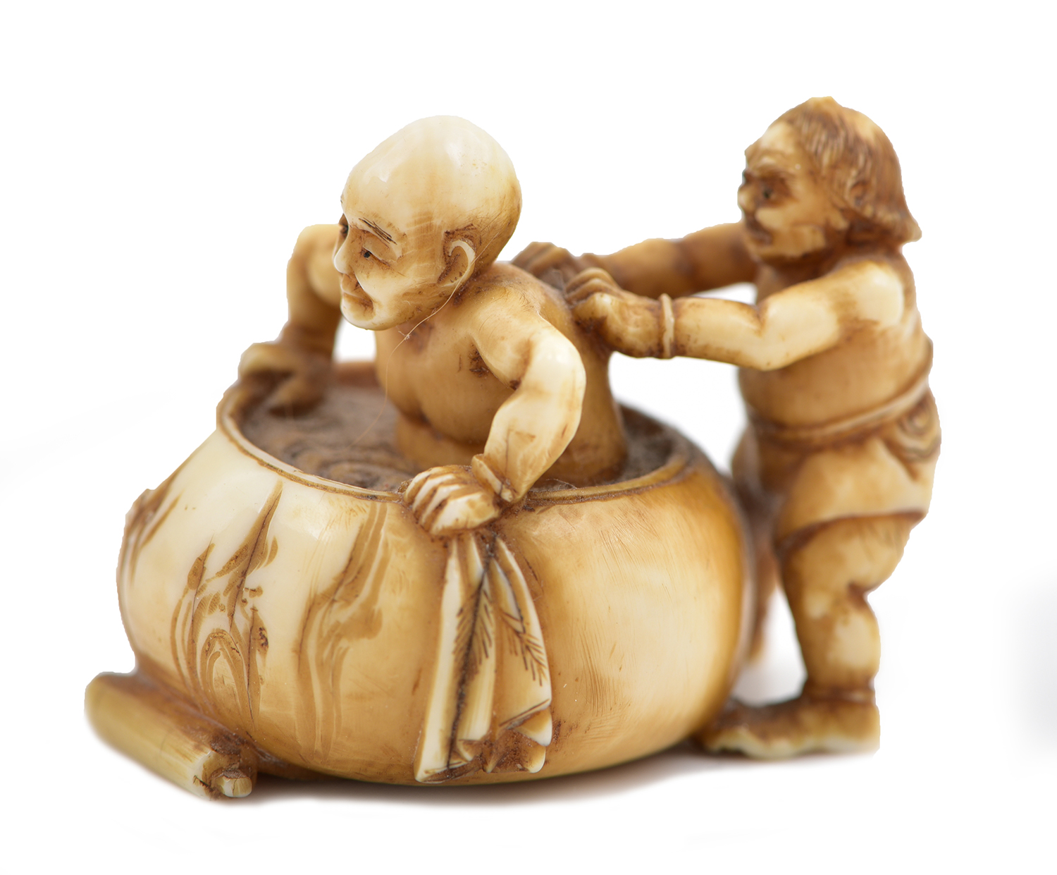 depicting an Oni bathing a rich man, inscribed signature to the underside, 3.5cm wide