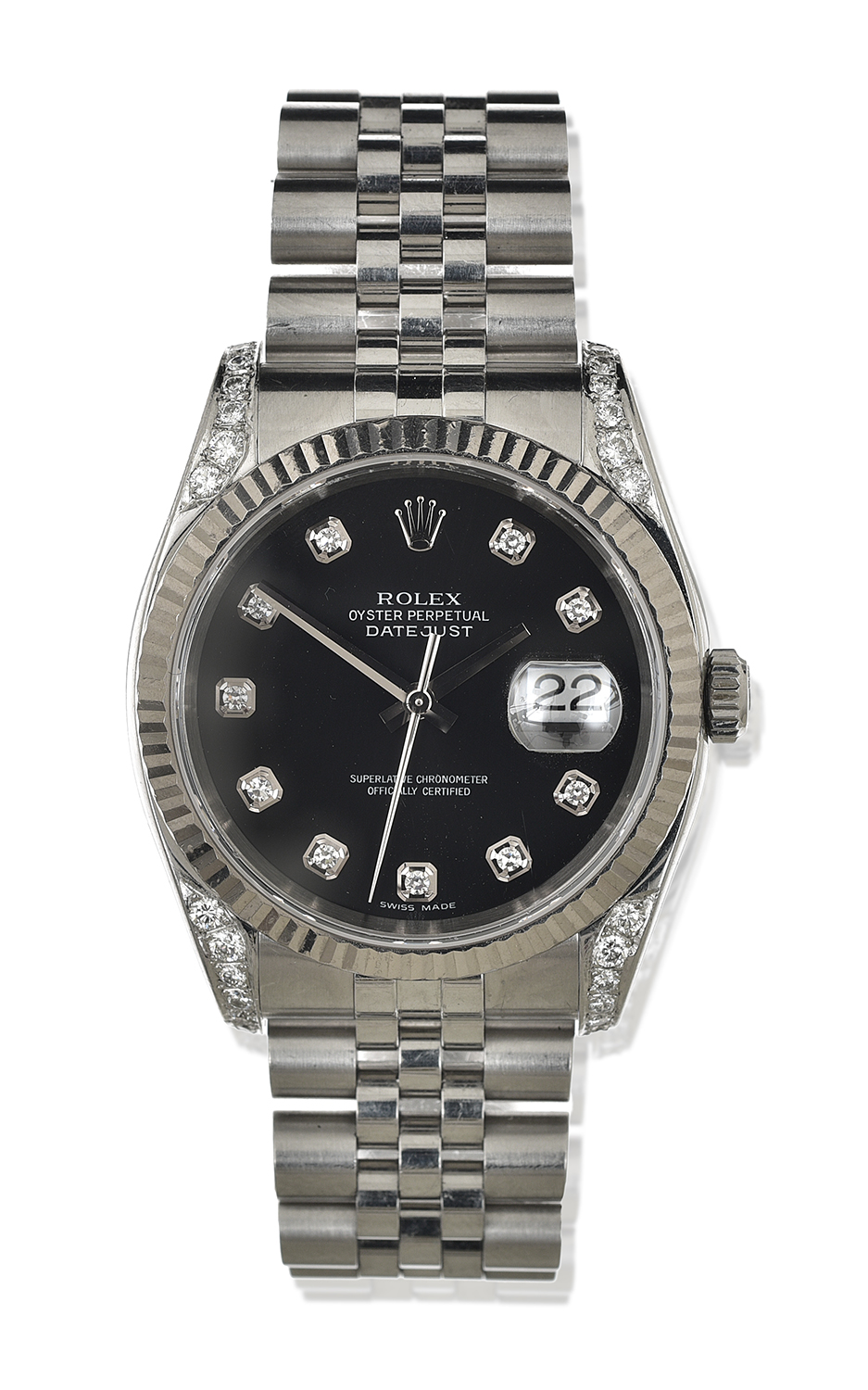Diamonds are after market. Case shows minor wear. Ticking but not recently serviced or timed.