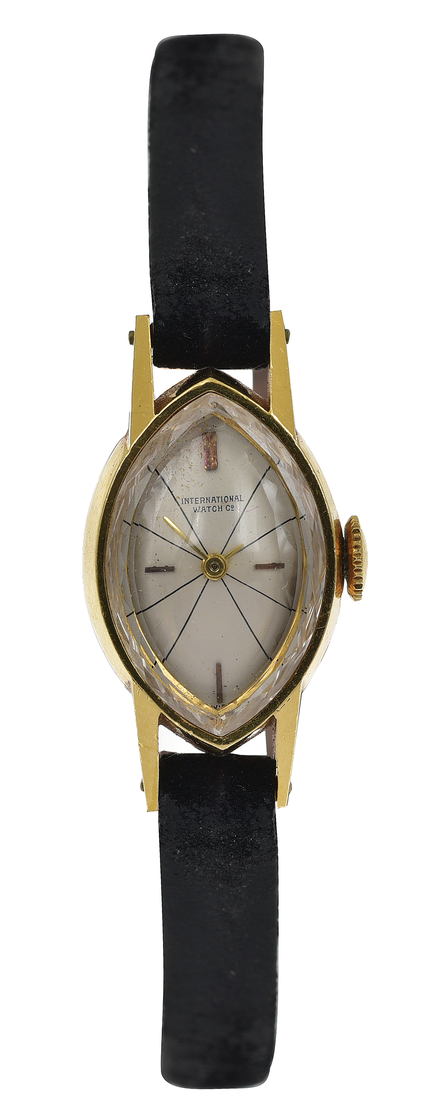 Manual wind movement, marquise shaped white dial with baton numerals, signed case, dial and movement, 18ct gold case and leather bands, case length 18mm.