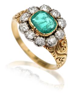 A GEORGIAN EMERALD AND DIAMOND RING