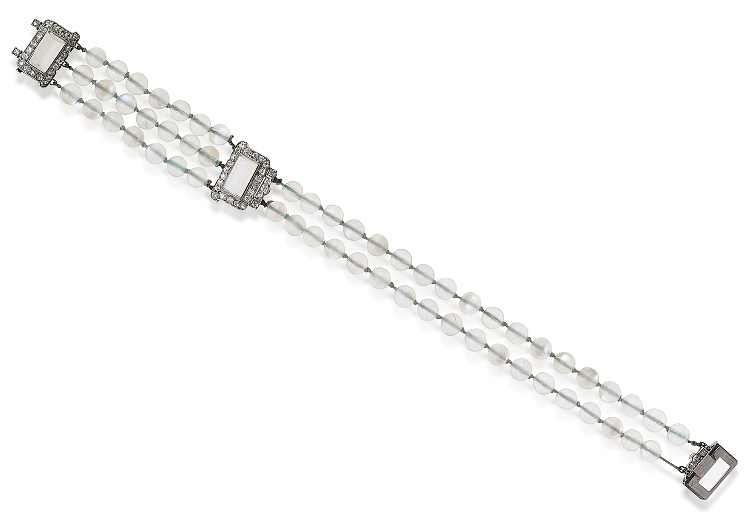 A DIAMOND AND MOONSTONE BRACELET BY CARTIER, LONDON