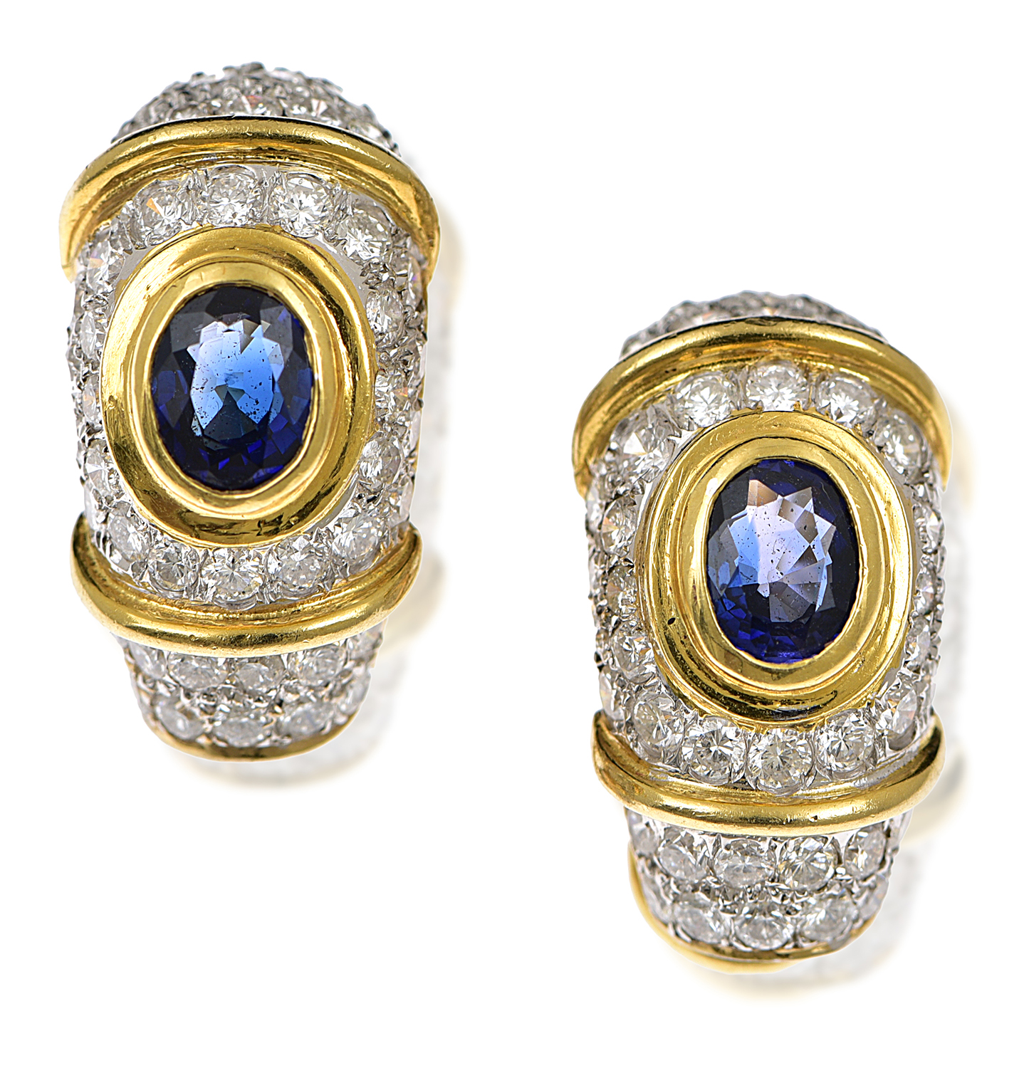 Earrings present in very good condition and stones are well matched. Clip fittings Stamped 750