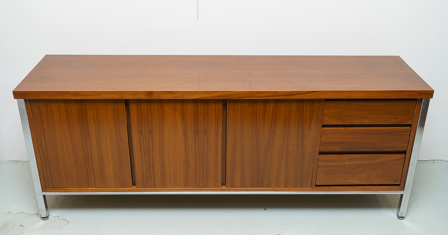 A 1960s AUSTRALIAN TEAK SIDEBOARD ON CHROME FRAME