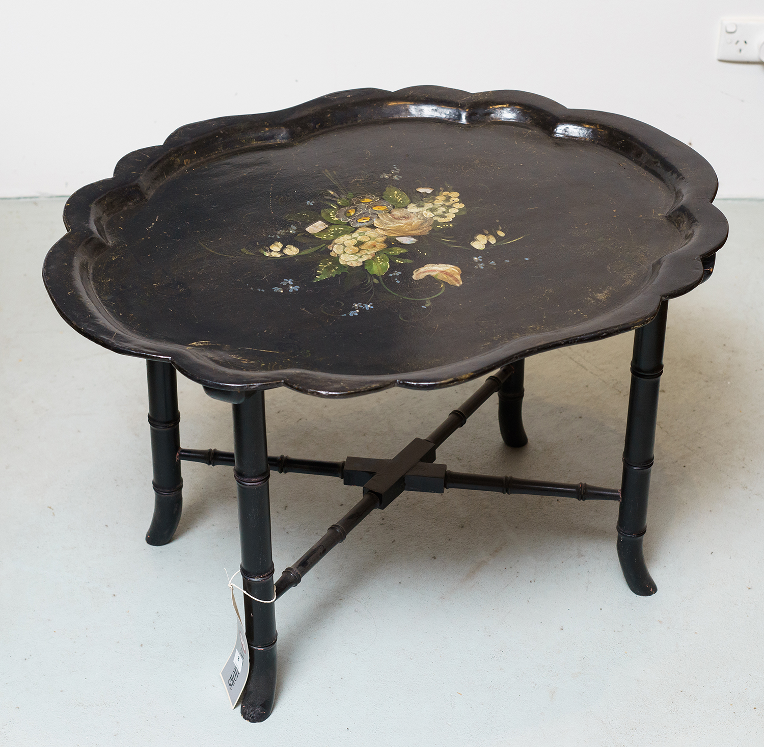 Tray on bamboo inspired stand, hand painted floral motif