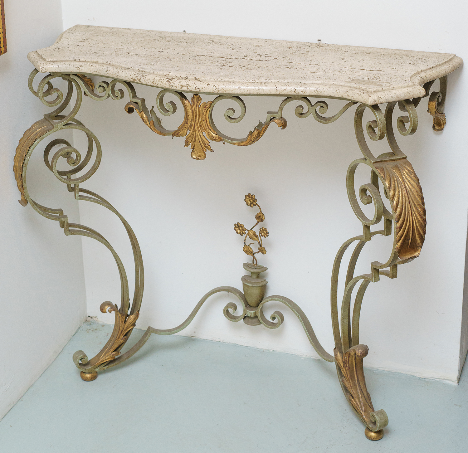A DECORATIVE FRENCH MARBLE TOP CONSOLE
