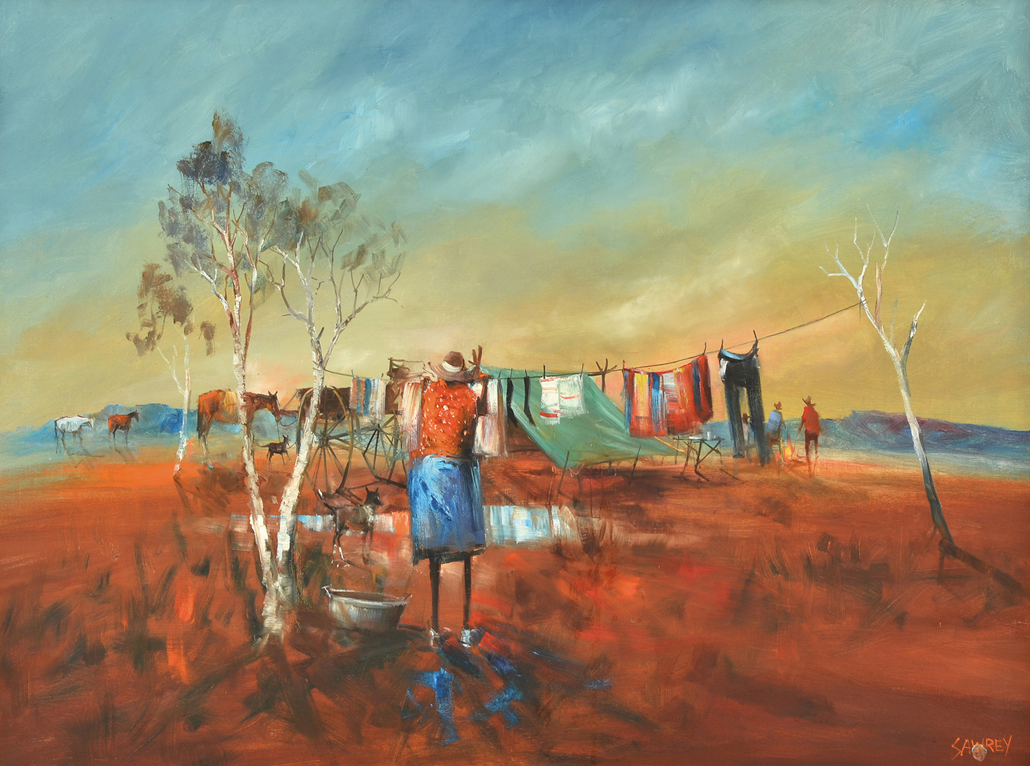 signed and inscribed verso: SERIES "THE DROVER'S MISSUS" W. QLD. No3./ HUGH SAWREY.