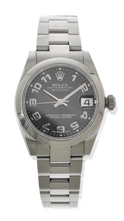Automatic movement, circular black dial with baton numerals, date aperture at three, signed case, dial and movement, stainless steel case with conforming Oyster bracelet bands, reference number 178240, serial number 4948344, 25mm diameter, with original box and papers.