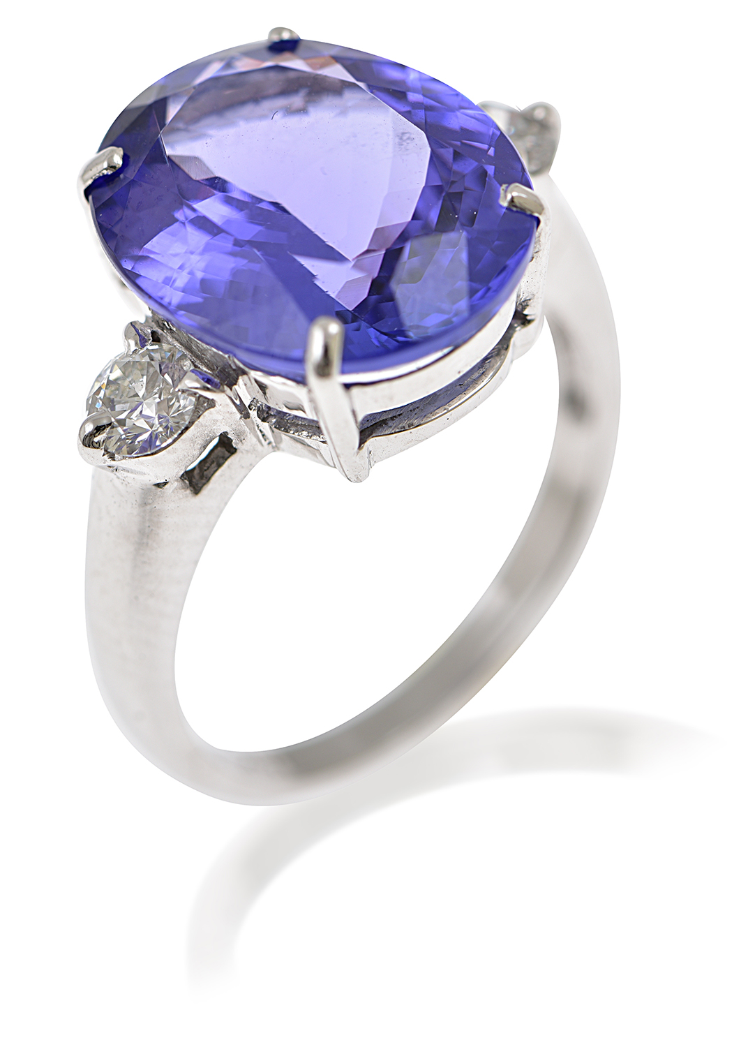 Ring presents in as new condition and stones are secure in their settings. Tanzanite is accompanied by IGI report stating stone is natural. Diamonds are colour G, clarity VS.