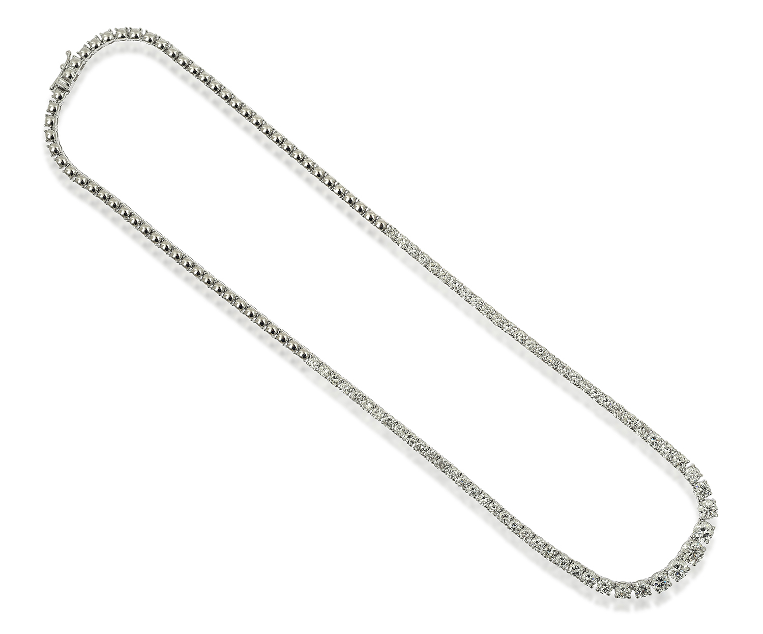 Featuring sixty three graduated round brilliant cut diamonds weighing 10.60cts total, mounted in 18ct white gold, total length 425mm.