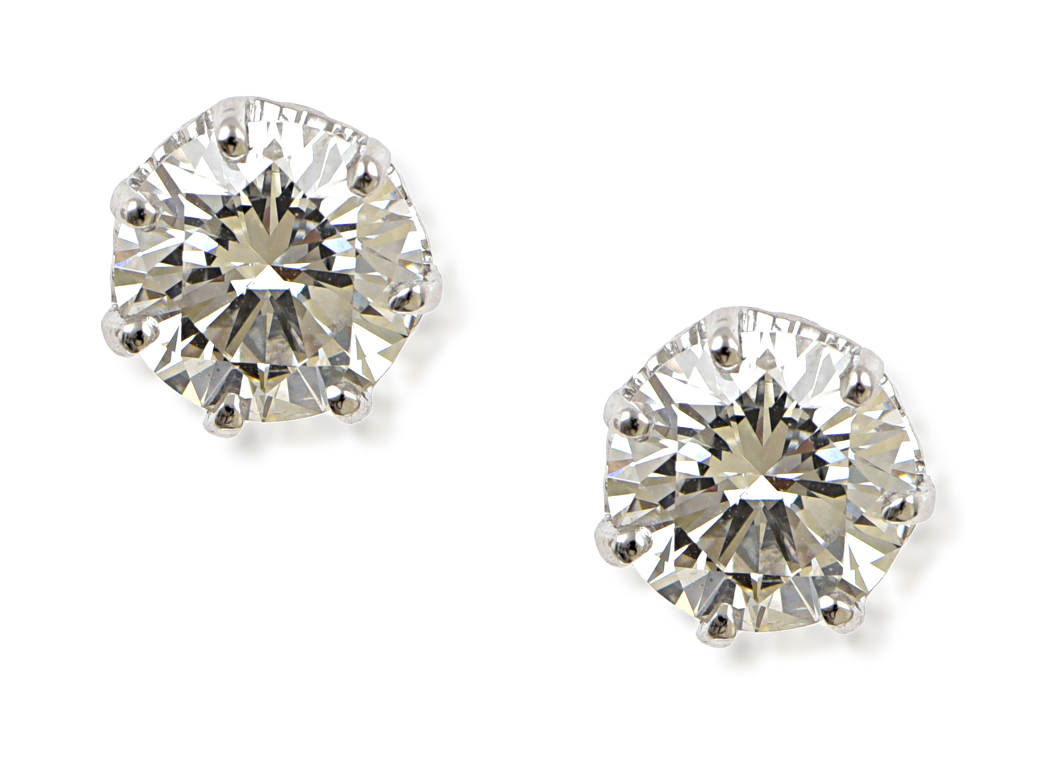 Each set with a round brilliant cut diamond of 1.50cts, mounted in 18ct white gold.