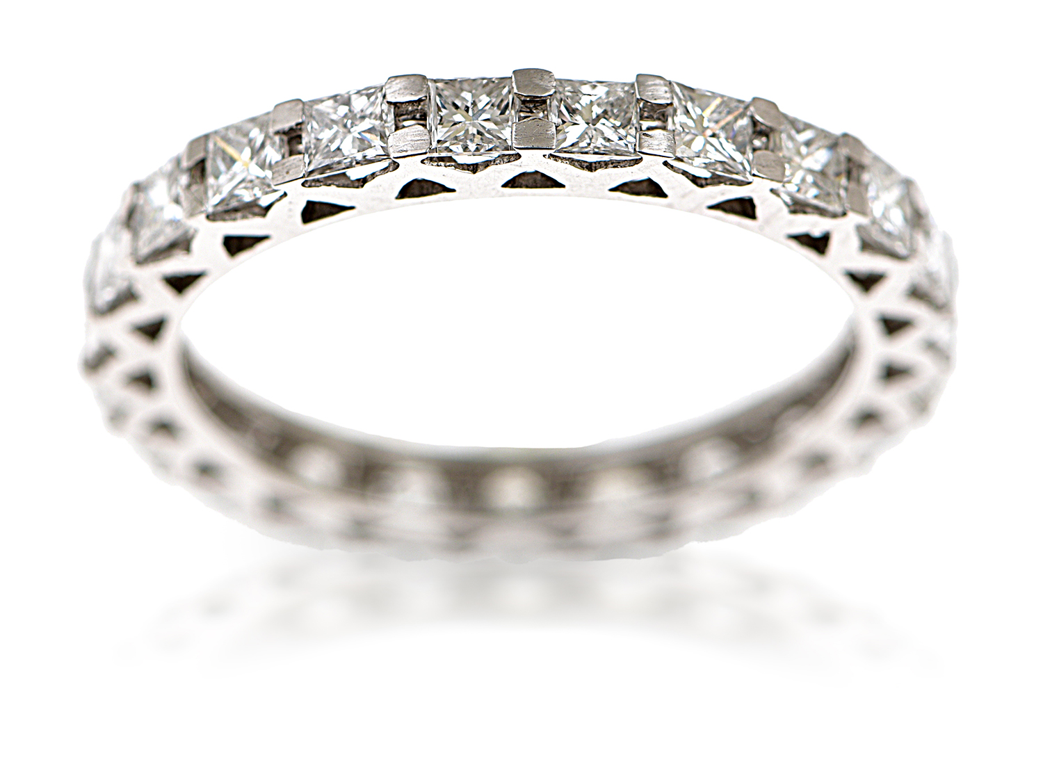 The twenty three princess cut diamonds totalling 1.90cts, mounted in 18ct white gold, ring size N.
