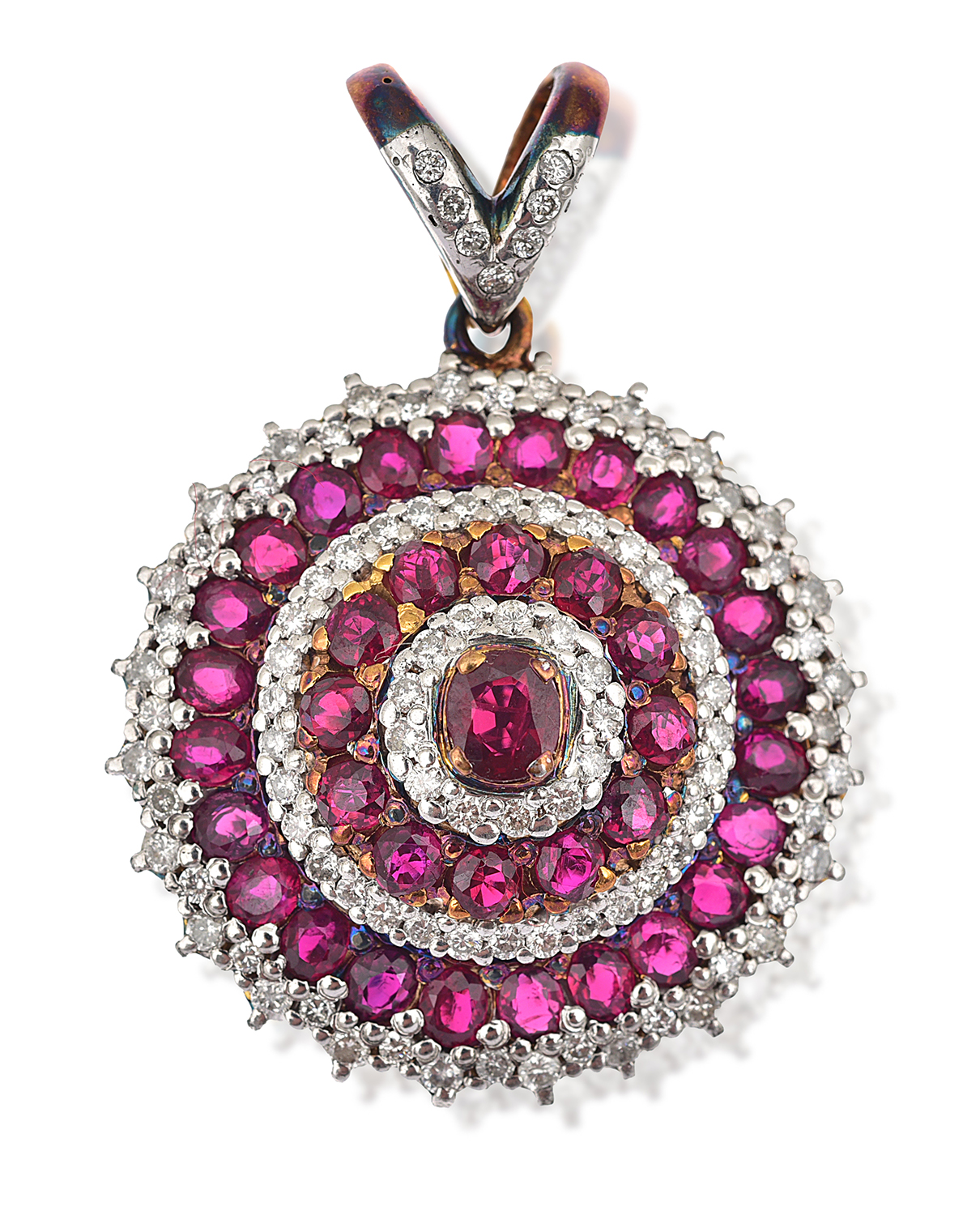 Featuring alternating rows of mixed cut rubies and round brilliant cut diamonds, mounted in 18ct gold.