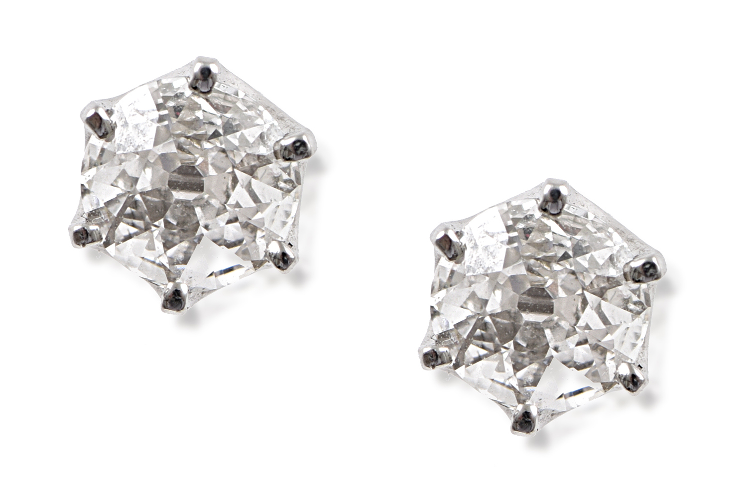 Each set with an old style vintage cut diamond of 0.58cts, mounted in 18ct white gold.