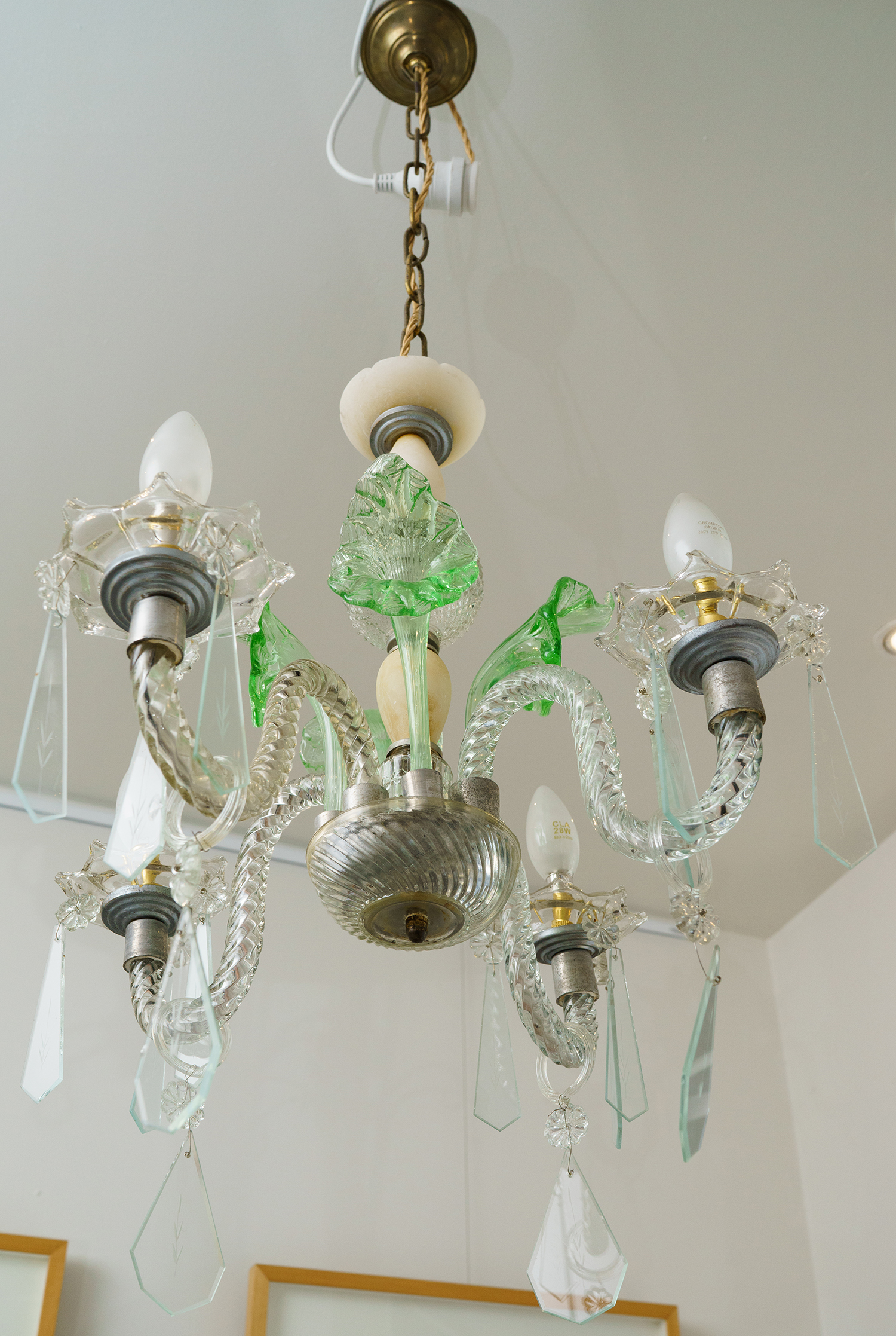 Green glass tulip decoration, alibaster fittings