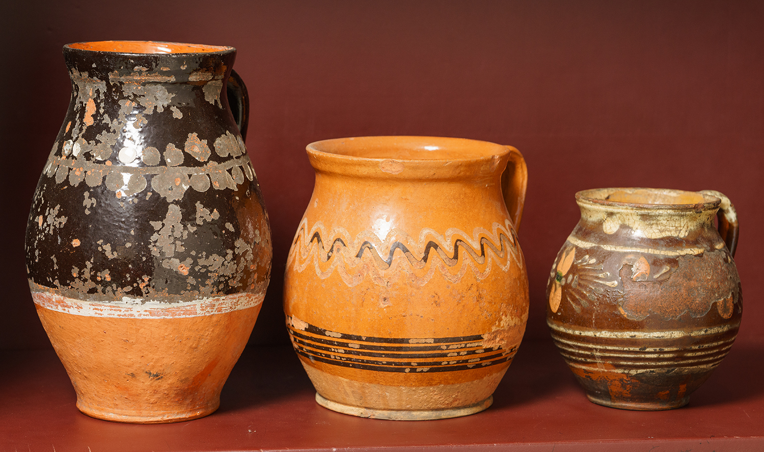 THREE EUROPEON TERRACOTTA JUGS