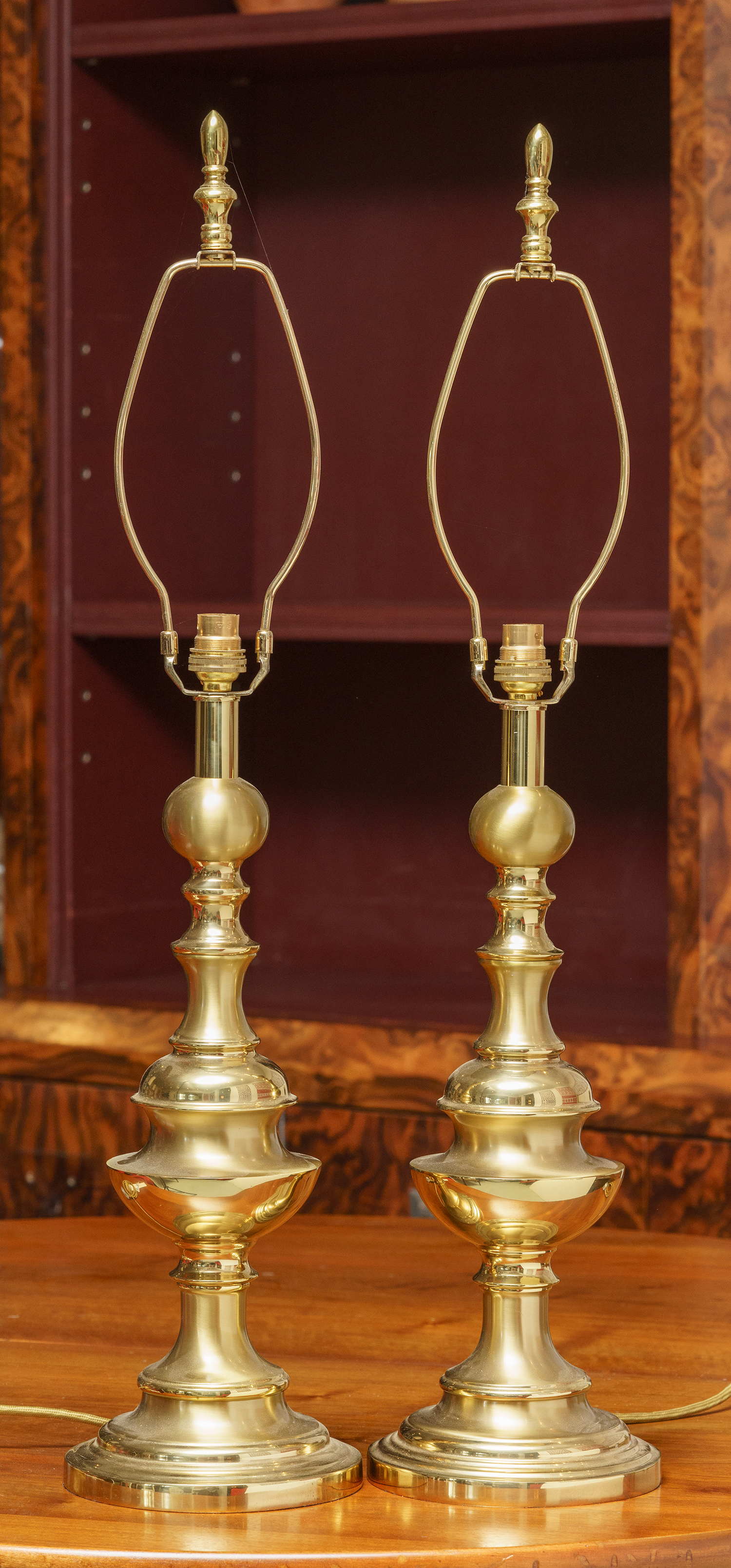 A PAIR OF MID CENTURY AMERICAN BRASS TABLE LAMPS