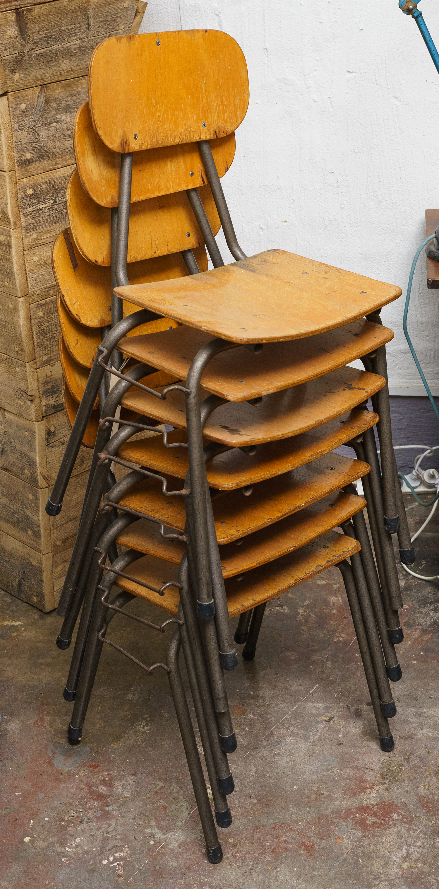 SEVEN DUTCH STACKABLE INDUSTRIAL CHAIRS