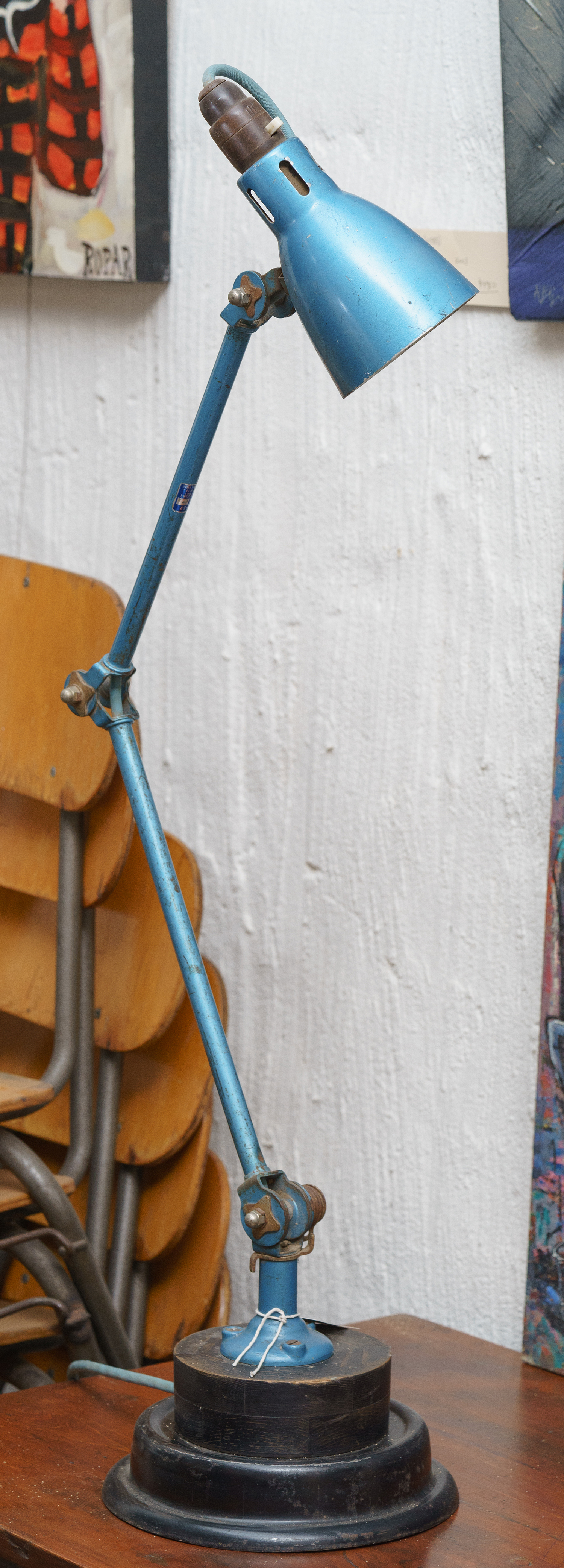 A MID CENTURY 'MOBILITE' TASK LAMP ON INDUSTRIAL BASE